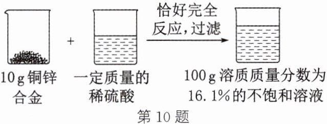 10. 某同学将铜锌合金与稀硫酸反应,具体实验过程和相关数据如图所示。下列说法中,错误的是 (