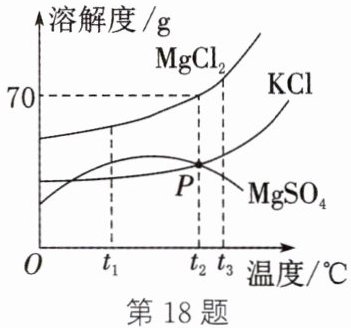 18. (2025·常州武进模拟)如图是$MgCl_{2}$、$KCl$和$MgSO_{4}$的溶解度曲线。下列说法正确的是 (