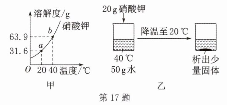 17. (2024·江西改编)如图甲是硝酸钾的溶解度曲线,如图乙是硝酸钾溶解和结晶的过程。下列说法正确的是 (