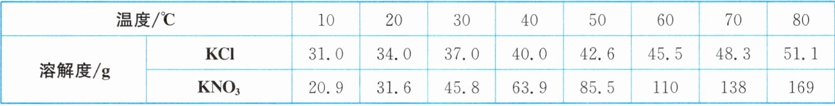 20. (2024·西安碑林模拟)$KCl$和$KNO_{3}$在不同温度下的溶解度如表。