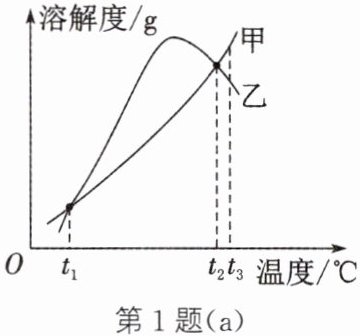 ③ $t_{2}^{\circ}C$时,将等质量的甲、乙两物质的饱和溶液降温到$t_{1}^{\circ}C$,析出晶体质量相等。请判断:上述说法