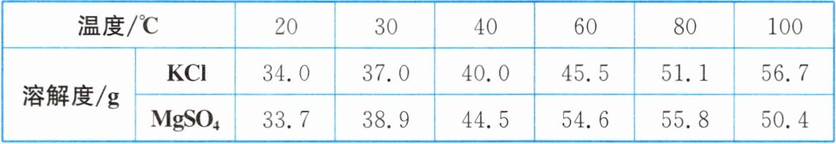 (填“元素”或“原子”)。(2) 海水中还含有$KCl$和$MgSO_{4}$等物质,$KCl$和$MgSO_{4}$在不同温度时的溶解度如表所示,如图(a)是对应的溶解度曲线。