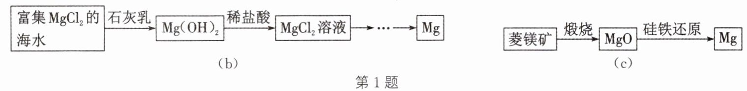 (3) 海水制镁。查找资料,提供两种提取金属镁的路径方案。方案1如图(b)所示,方案2如图(c)所示。