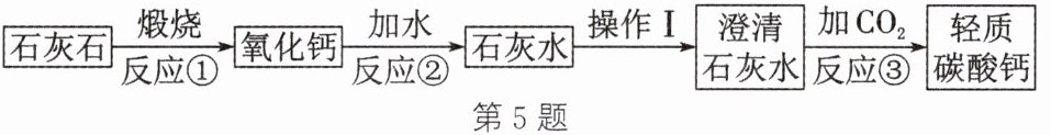 。答案:$5.(1)CaCO₃\stackrel{高温}{=}CaO + CO₂↑ (2)CaO + H₂O = Ca(OH)₂ $放热 (3)漏斗