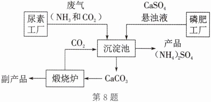 8. “绿色化学”是化工生产中的重要理念。如图为利用尿素工厂废气和磷肥工厂废渣(液)联合生产硫酸铵的工艺流程。回答下列问题: