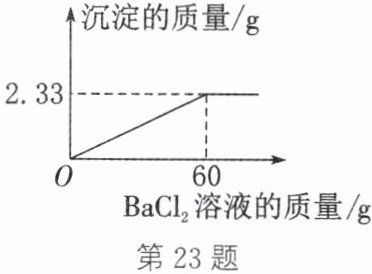 23. (2024·眉山)实验室有一瓶标签被腐蚀的Na₂SO₄溶液。某化学兴趣小组的同学为测定该Na₂SO₄溶液的溶质质量分数,取100 g该Na₂SO₄溶液于烧杯中,加入BaCl₂溶液,生成沉淀的质量与加入BaCl₂溶液的质量关系如图所示。计算: