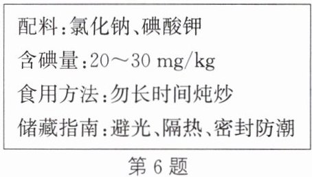 6. 如图是某种加碘食盐包装袋上的部分说明,下列说法错误的是(