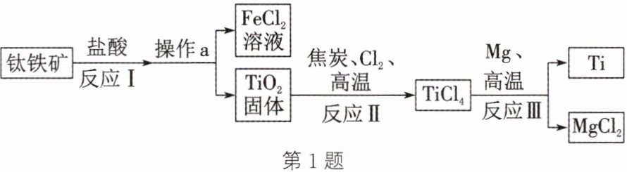 (6) 钛(Ti)被称为航空金属,建造空间站使用的钛合金具有很多优良的性能,如图是以钛铁矿[主要成分为钛酸亚铁(FeTiO₃)]为主要原料冶炼金属钛的生产工艺流程。
