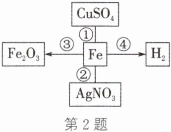 2. (2024·赤峰红山模拟)如图是铁和其他物质的性质关系(“—”表示相连物质间能发生反应,“→”表示两物质间的转化关系,部分物质和反应条件已略去),下列说法正确的是(