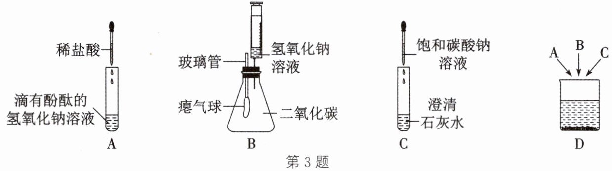 3. (2024·龙东地区)同学们学习碱的化学性质时,进行了如图所示的实验。