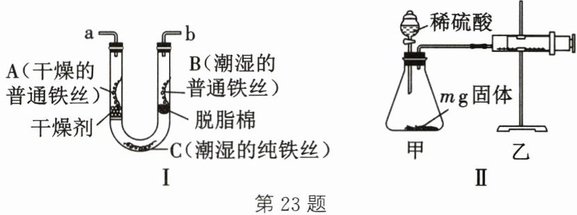 (5)为探究某纯铁粉样品的锈蚀情况,将铁粉洗涤、干燥,得 m g 固体。连接装置如图Ⅱ,检查气密性后加入固体与足量稀硫酸进行实验。