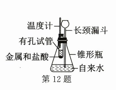 12. 用金属与酸溶液反应比较金属活动性强弱,对比反应放出的热量比对比化学反应速率更具科学性。某小组同学用三套相同装置进行实验并记录数据。下列说法错误的是(
