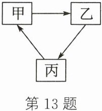 13. 甲、乙、丙的转化关系如图所示(“→”表示反应能一步实现,部分物质和反应条件已略去),则符合要求的甲、乙、丙依次为(