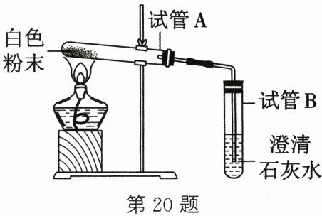,说明白色固体为碳酸氢钠。写出试管 B 中发生反应的化学方程式:CO₂+Ca(OH)₂=CaCO₃↓+H₂O