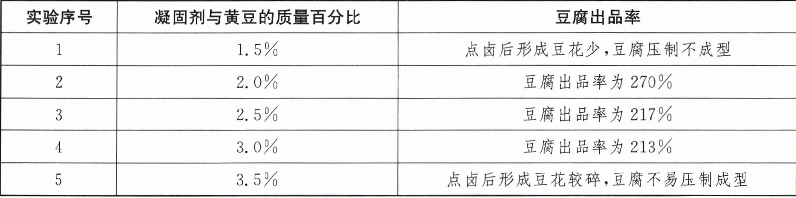 (2)点卤时凝固剂与黄豆的质量百分比。