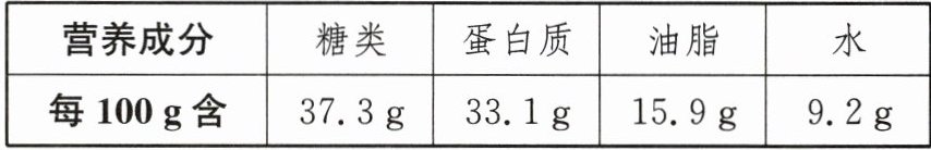 黄豆是制作豆腐的主要原料,如表是某黄豆的主要营养成分信息,其中含量最高的是