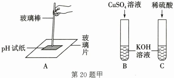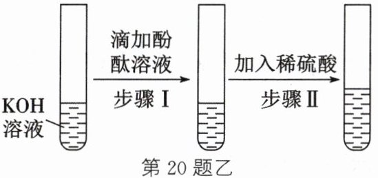 。答案:20.【设计实验】(1)> (2)有蓝色絮状沉淀产生 (3)①溶液由红色变成无色 ②2KOH+H₂SO₄=K₂SO₄+2H₂O ③锌(或碳酸钠;或紫色石蕊溶液等合理答案均可)【得出结论】在水中都能解离出OH⁻(合理答案均可)