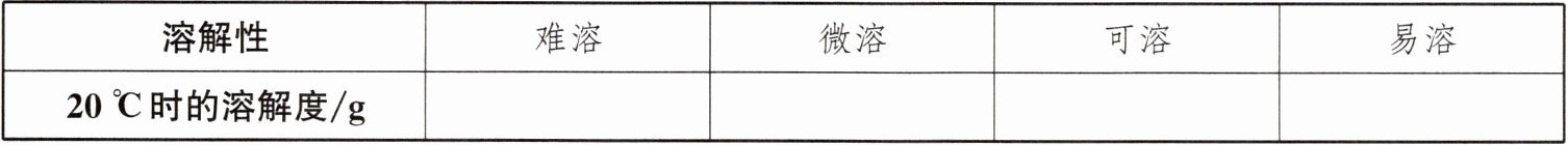 答案:1.(1)某固态物质在100g溶剂里达到饱和状态时所溶解的质量 (2)①一定温度 ②100g溶剂 ③饱和 ④克(或g) (3)溶质、溶剂的性质 温度 (4)<0.01 0.01~1 1~10 >10