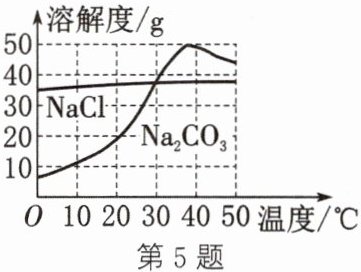 5. (2024·连云港)我国盐湖地区有“夏天晒盐(NaCl),冬天捞碱(Na₂CO₃)”的做法。NaCl、Na₂CO₃的溶解度曲线如图所示。下列说法中正确的是(