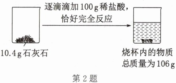 2. 化学兴趣小组的同学在整理试剂时,发现一瓶标签受损的稀盐酸。为测定该稀盐酸的溶质质量分数,同学们进行了如图所示的实验(所选石灰石中的杂质不溶于水,也不与其他物质反应,生成的气体全部逸出)。请回答下列问题:
