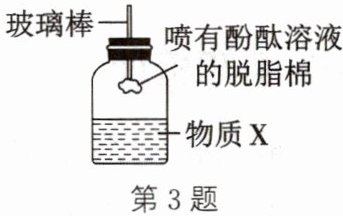3. 如图所示装置中,在玻璃棒的一端固定一团喷有酚酞溶液的脱脂棉,先加入物质X,再塞上带玻璃棒的橡胶塞,片刻后,能观察到喷有酚酞溶液的脱脂棉变红。物质X可能是(