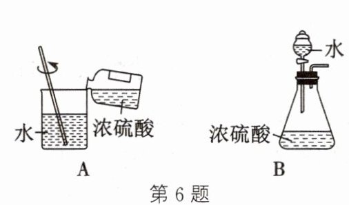 6. 如图所示是两种稀释浓硫酸的操作,回答下列问题: