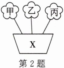 2. 图中甲、乙、丙、X都是我们已经学过的物质,甲、乙、丙均能与X反应。若X是稀盐酸,则甲、乙、丙不可能是下列物质中的(