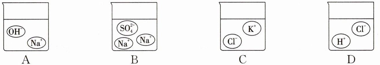 (2)${H^{+}}$ ${Cl^{-}}$ ${H^{+}}$ ${SO^{2-}_{4}}$ ${Na^{+}}$ ${OH^{-}}$ ${Ca^{2+}}$ ${OH^{-}}$ 自由移动的离子