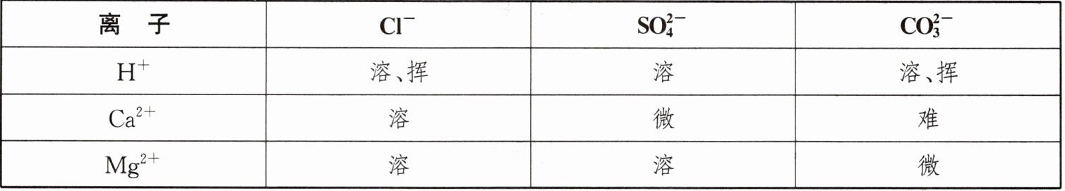 C. 由表中Ca²⁺与CO₃²⁻组合“难”、Ca²⁺与SO₄²⁻组合“微”可知,常温下溶解度:CaCO₃<CaSO₄,错误。