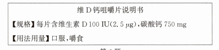 D.该补钙剂的推荐用量为一次2片,一日3次