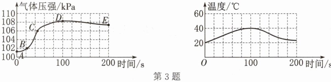 3. 某化学兴趣小组的同学将锌片与稀硫酸放入密闭容器中,用压强传感器和温度传感器测得的数据分别如图所示。下列说法正确的是(