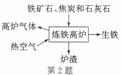 2. (2025·盐城模拟)工业上把铁矿石、焦炭和石灰石一起加入高炉,从下方通入热空气,最后得到生铁。下列说法中正确的是(