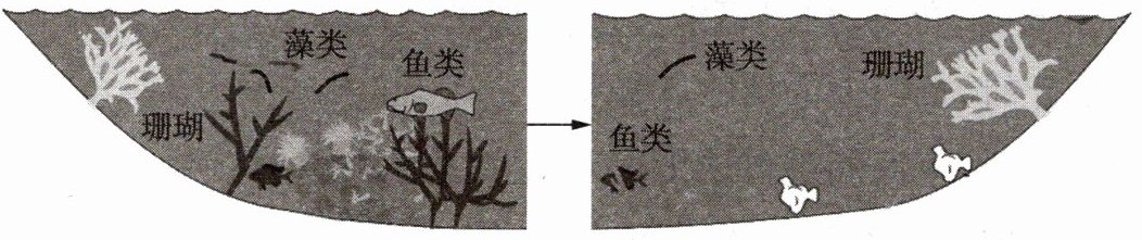 6. (多选题)下图表示某种化学物质泄漏,造成某海洋生态系统发生了变化,其中藻类等生物的种类和数量也有所变化。下列有关说法合理的是(