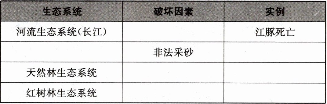 1. 资料:为保护生态系统的稳定、建设生态文明,我国建立了生态环保督察体系。在近期的督察中,相关部门通报了多起破坏生态环境的违法现象。