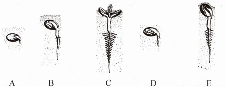 2. 植物种子在萌发形成幼苗过程中,会出现下图所示的一些变化。请据图回答有关问题。