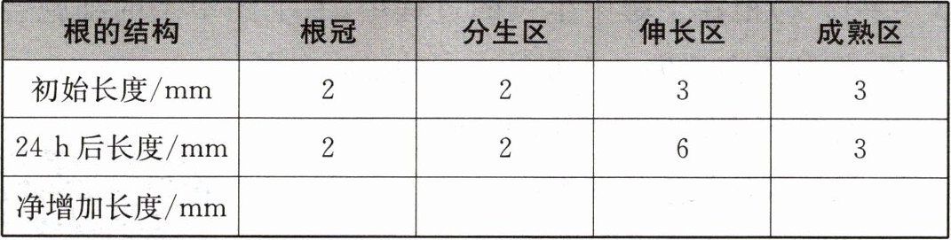 7. 生物兴趣小组的同学用绿豆幼苗进行了“观察根的生长”实验,实验结果如下表所示,请据表回答。