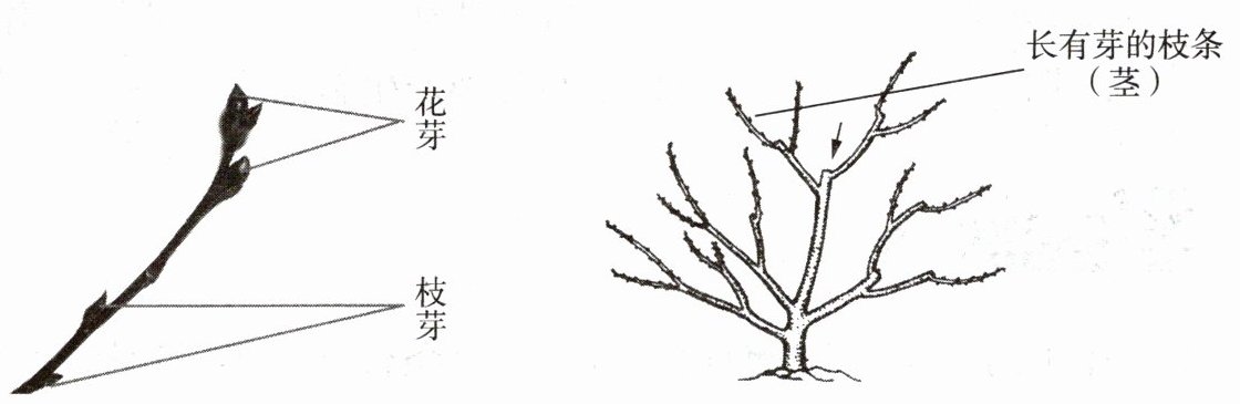 (3) 在生产中,果农会修剪梅树。右上图中梅树经过了如箭头所指的处理,即摘除