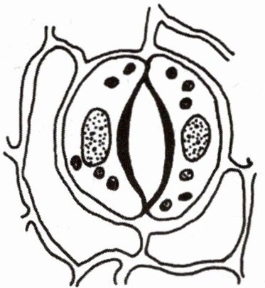 4. 下图为叶片表皮的气孔示意图。请在图中用画线的方式标注出表皮细胞、气孔、保卫细胞。