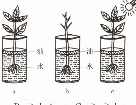 4. (单选题)下图实验中,3个实验装置的容器大小、容器中的水量完全相同(油的作用是将水与空气隔开,防止水分蒸发)。一段时间后,容器中水量由多到少是(