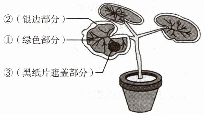4. 银边天竺葵为本属植物天竺葵的变种,特征为叶片边缘白色。以下为兴趣小组同学用银边天竺葵进行光合作用实验研究的示意图,请回答下列问题。