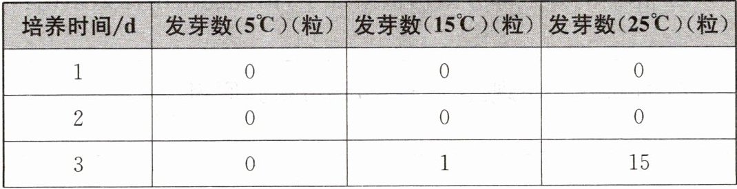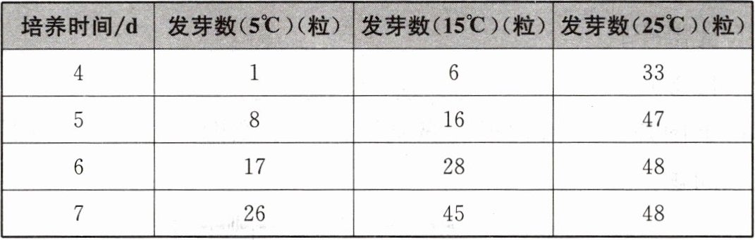 4. 下表是某同学在 25℃、15℃和 5℃条件下,分别用 50 粒小麦种子测定发芽率的实验结果。请据表回答下列问题。