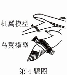 4. (2025·江西) 如图所示, 飞机的机翼是仿照鸟的翅膀设计出来的, 气流经过机翼下方的流速比上方的流速小, 机翼下方的空气压强比上方的空气压强