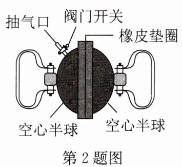 实验证明了大气压强的存在, 如图所示为该实验关键装置的示意图. 实验时, 要将两个半球内抽成接近 真空