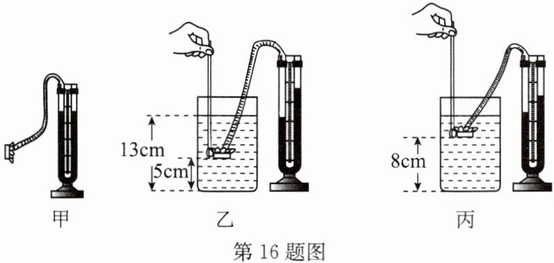 时, 和图乙对比, 可说明小明的观点是错误的.答案:16. (1)气密性 (2)高度差 (3)8 (4)$L≥16cm$