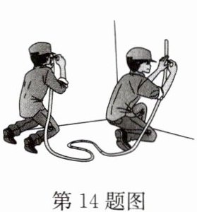 14. 在装修房屋时, 工人师傅常用一根灌有水 (水中无气泡) 且足够长的透明塑料软管的两端靠在墙面的不同地方并做出标记, 如图所示. 工人师傅这样做的目的是 (