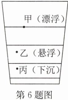 6. (2024·泰州海陵区一模)盐水选种是我国古代劳动人民挑选种子的一种方法.甲、乙、丙三颗体积相同的种子放在盐水中的状态如图所示,以下判断正确的是(
