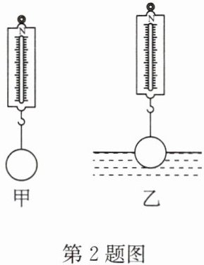 2. 如图甲所示,弹簧测力计的示数为5N;如图乙所示,小球一半浸在水中,弹簧测力计的示数为2N,则小球受到的浮力为