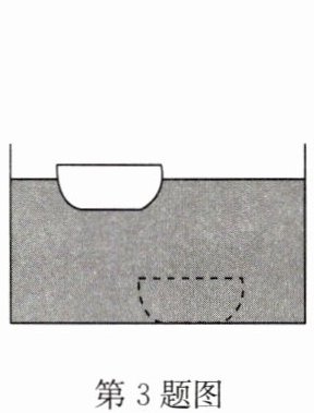 3. 如图所示,小丽同学饭后在家洗碗时,将沉在洗碗池底的碗洗干净后放在水面,发现碗在水中漂浮,若洗碗池里的水不发生变化,则碗漂浮时比碗沉入水底时所受到的浮力