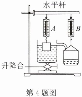 4. (2024·德州)小强用如图所示的实验装置验证阿基米德原理,通过调节升降台让金属块浸入盛满水的溢水杯中(金属块始终未与容器底接触),溢出的水会流入右侧空桶中,下列说法正确的是(