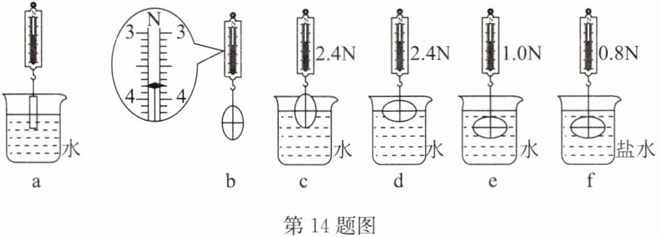 (1)a中将铁块缓慢浸入水中,随着深度增加,弹簧测力计的示数逐渐变小,铁块受到的浮力逐渐
